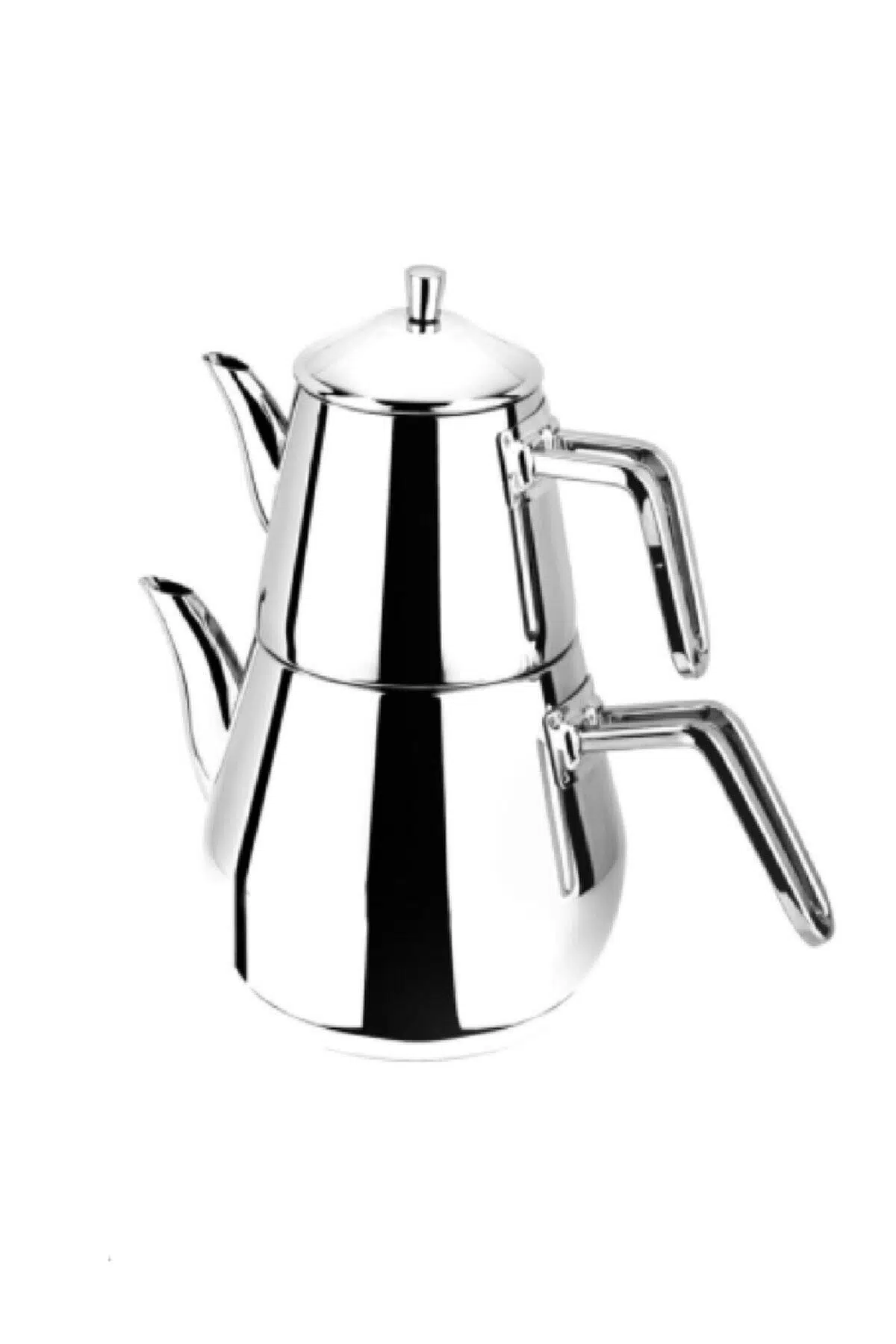 Geniş hacimli ve şık tasarımlı .Paslanmaz Çelik Çaydanlık .18/10 Paslanmaz Çelik .Buhar kapağı .Bulaşık Makinesinde Yıkamaya Uygundur. .AISI 304 kalite Paslanmaz Gövde .0,75 lt demlik su kapasitesi/11 cm yükseklik .2 lt suluk kapasitesi/15 cm yükseklik .Ergomik kulpları sayesinde kolay tutuş sağlar.