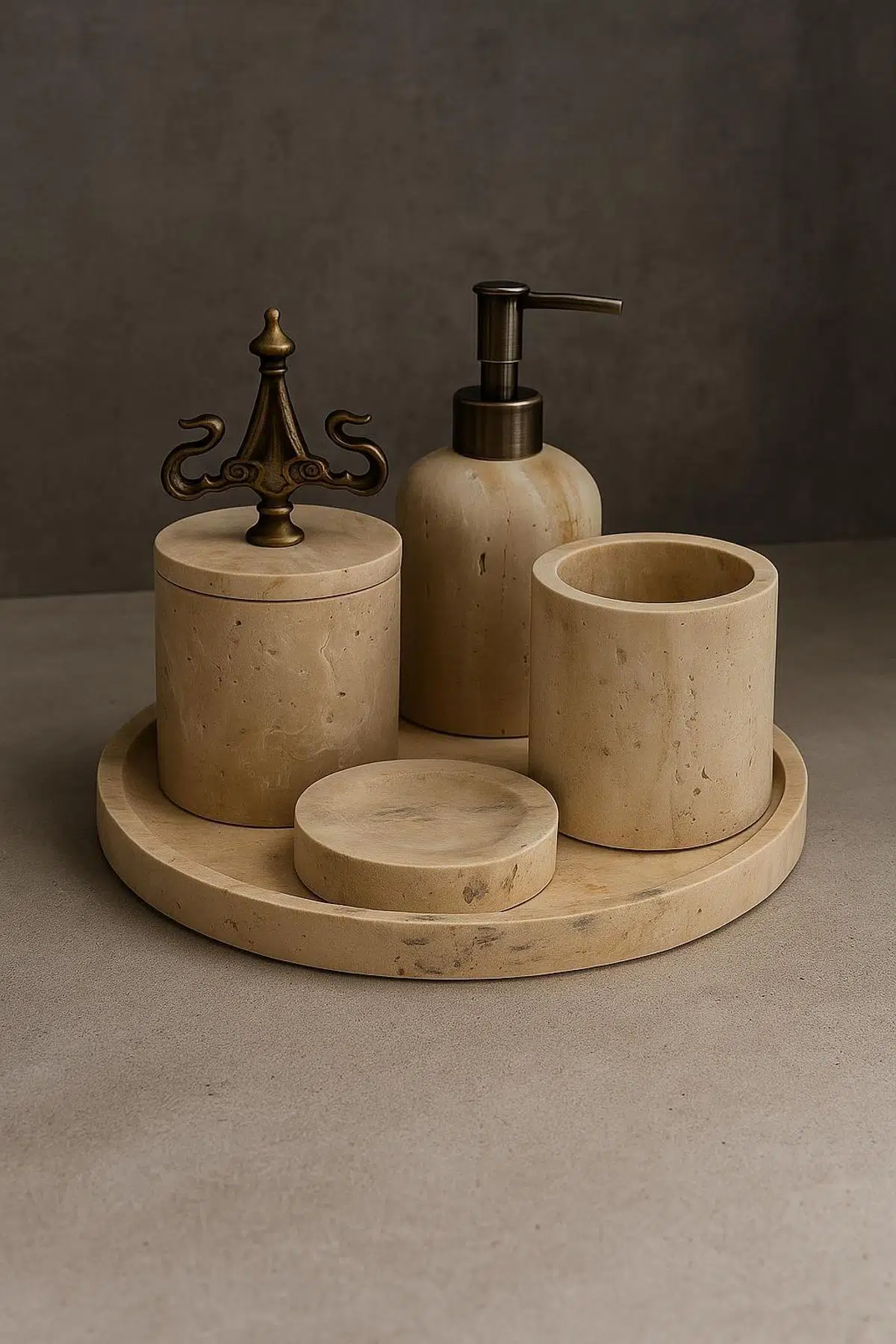 | Etiketler | Evza Traverten Mermer Damla Banyo Seti Saçak Kulp |
