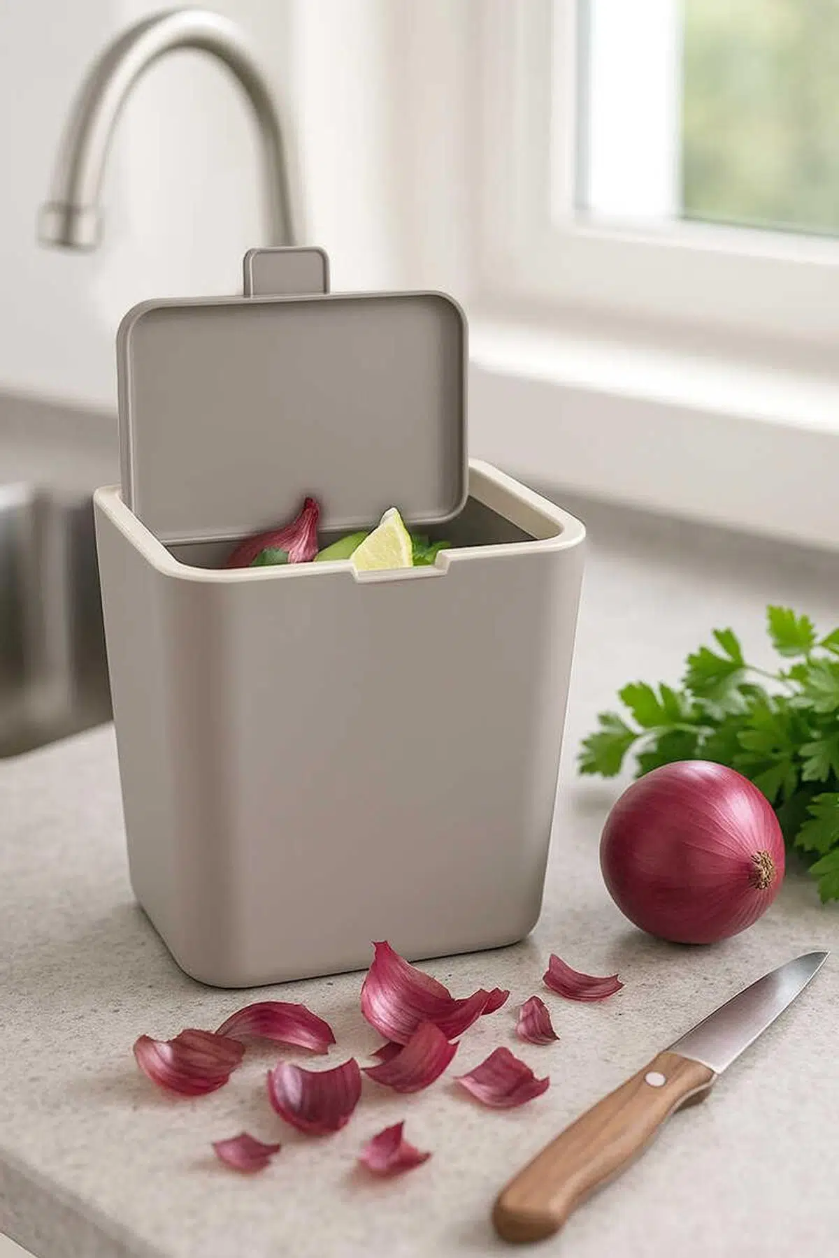 Flip Çöp Kovası Kum Beji Flip Çöp Kovası, kompakt boyutu ve modern tasarımıyla evinizin her köşesinde düzen sağlar. Mutfakta, banyoda ya da ofiste çöp kovası veya düzenleyici olarak kullanılabilir. Dayanıklı plastik gövdesi uzun ömürlü kullanım sunarken, geniş hacmi sayesinde kullanımı pratiktir. Kum Beji tonunun şık görünümü, yaşam alanlarınıza modern bir dokunuş katar. Ürün Bilgileri Malzeme: Plastik Renk: Kum Beji Parça Sayısı: 1 Adet Kova Hacim: 6 Litre Boyutlar: Boy: 25 cm En: 22 cm