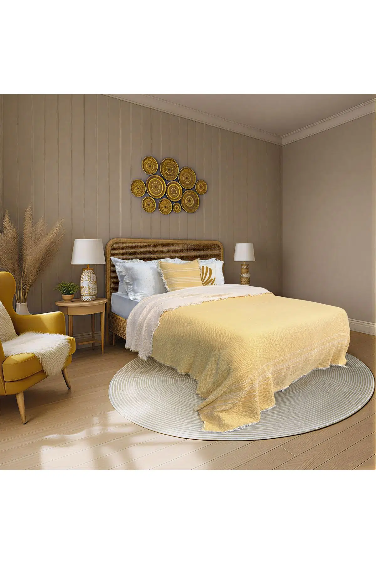 | Etiketler | Sarev Mentha %100 Pamuk Sarı Çift Kişilik Yatak Örtüsü |