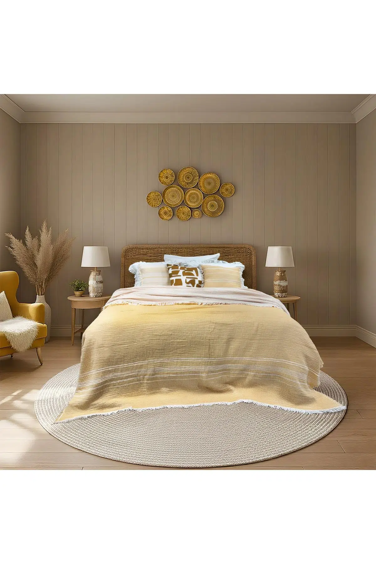 | Etiketler | Sarev Mentha %100 Pamuk Sarı Tek Kişilik Yatak Örtüsü |