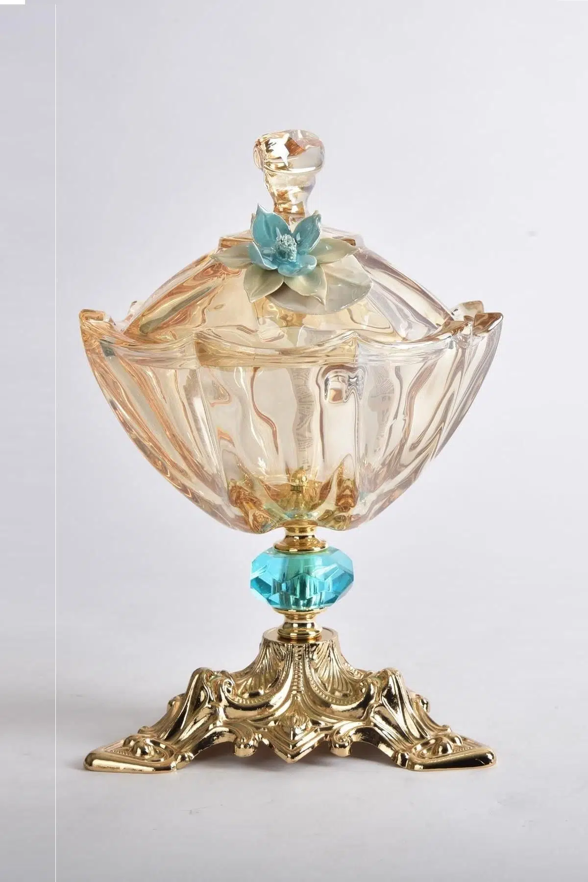 Seta Lotus Franco ayaklı şekerli ile ev dekorasyonunuza ve mutfak dekorasyonunuza stilinizi yansıtın. Dekoratif şekerlik şık tasarımı ile ev dekorasyonunuza eşsiz bir hava katacak. Dekoratif obje yaşam alanınızın vazgeçilmez bir parçası olacak. Dekoratif şekerlik birbirinden iddialı ev dekorasyon kombinasyonlarınızın favori dekoratif objesi olacak. Seta Lotus Franco cam - renkli şekerlik ile sofranıza çekici bir dokunuş yapın. Renk: Gold, mavi, amber (cam) Ürün İçeriği: Dekoratif şekerlik, dekor kase ürün Bileşeni: Cam, metal Ebat (en/boy cm): 18*29 Ürün Kodu: STFC-203 Kullanım Şekli: Evinizde, ofisinizde, zevkinize uygun dekorasyonda tarzınızı yansıtmak istediğiniz her alanda kullanabilirsiniz. Bakım: ürünlerde temizlik maddelerinden kaçının.ürünler asidik ortamdan uzak tutulmalıdır. Zaman zaman kuru bir bezle silinerek parlatılmalıdır. ürün darbe ve çarpmaya karşı korunmalıdır.