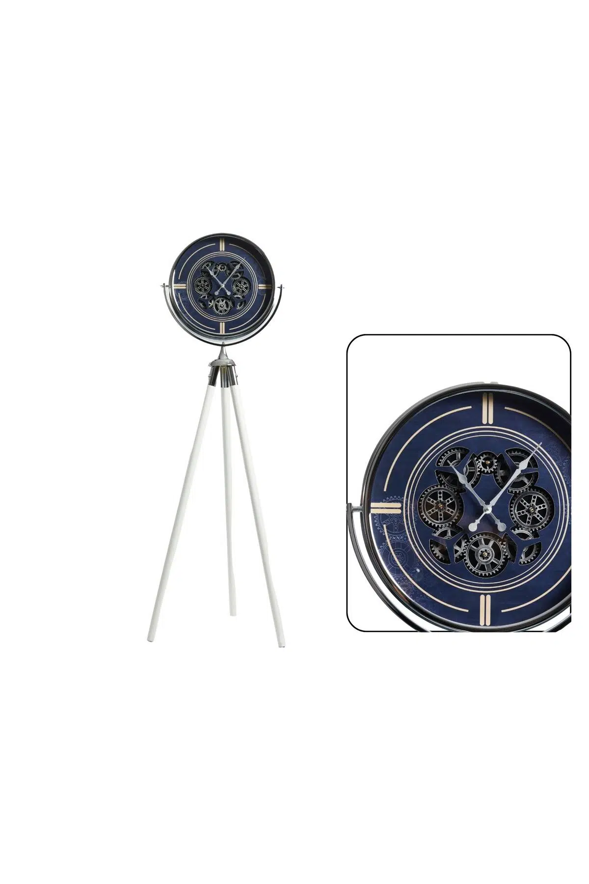 Setabianca T Serisi Ayaklı Çarklı Saat, klasik ayaklı saat formunu modern ve mimari bir yaklaşımla yeniden yorumlayan özel bir tasarımdır. 45 cm çapındaki metal çerçeveli saat gövdesi, çark detaylarıyla endüstriyel ve dekoratif bir karakter kazanırken, zemine oturan yapısıyla mekânda güçlü bir duruş sergiler.